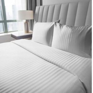 KOMPLET POŚCIELI HOTELOWA BAWEŁNA BIAŁA PASKI 200X220CM + 2 POSZEWKI