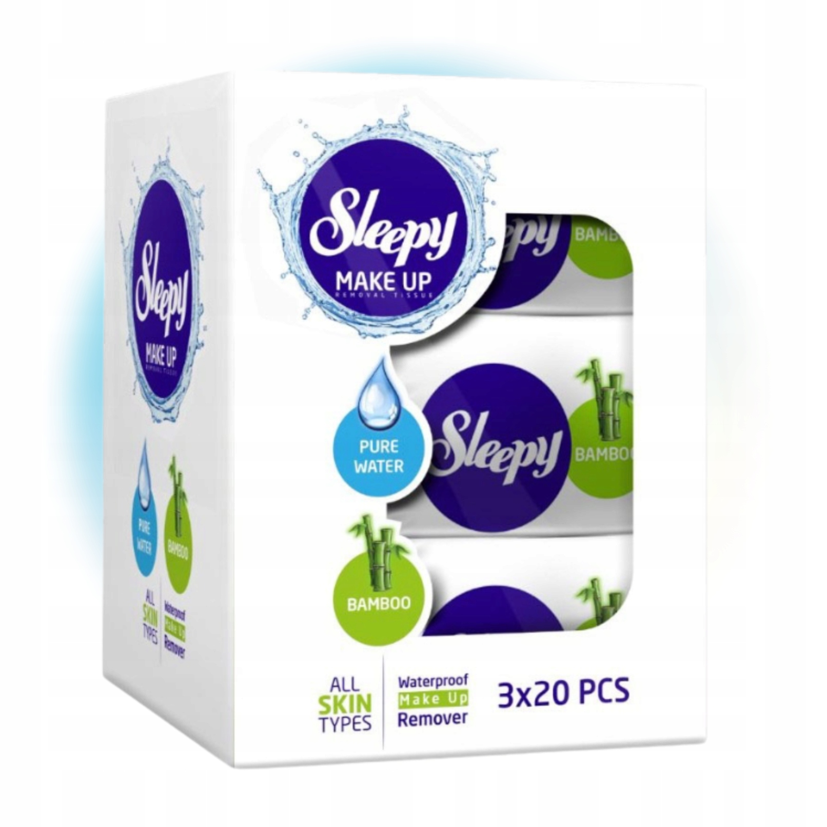 Chusteczki SLEEPY Make Up do demakijażu wodoodpornego nawilżane 3x20szt