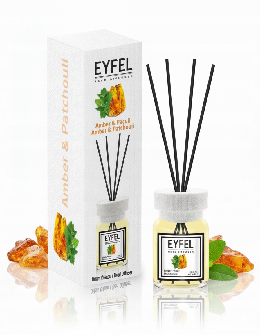 EYFEL Amber & Patchouli to intensywna kompozycja zapachowa, która zachwyca głębokimi, zmysłowymi nutami. Aromat łączy w sobie ciepły bursztyn oraz ziemistą, orientalną paczulę, tworząc harmonijny zapach idealny do salonu, sypialni, gabinetu czy przestrzeni relaksu.