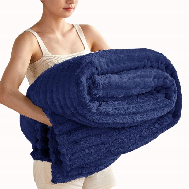 GRUBY KOC PASKI 200X220cm PLED NARZUTA NA ŁÓZKO KANAPE GRANATOWY ROŻNE KOLORY
