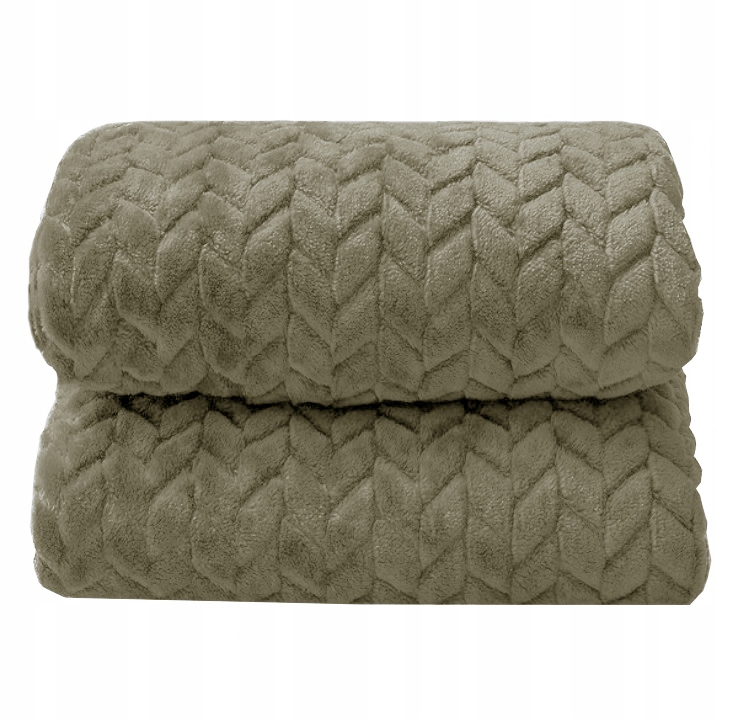 Gruby miękki koc 70X160cm narzuta W JODEŁKĘ poliester pled BEZOWY