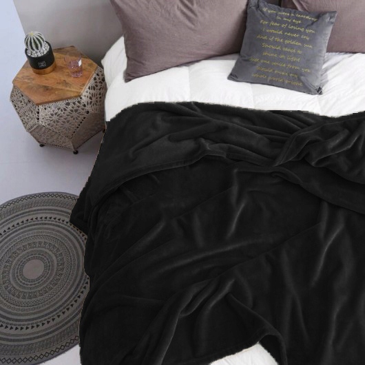 Koc miękki 200x220cm narzuta Gładki poliester pled czarny