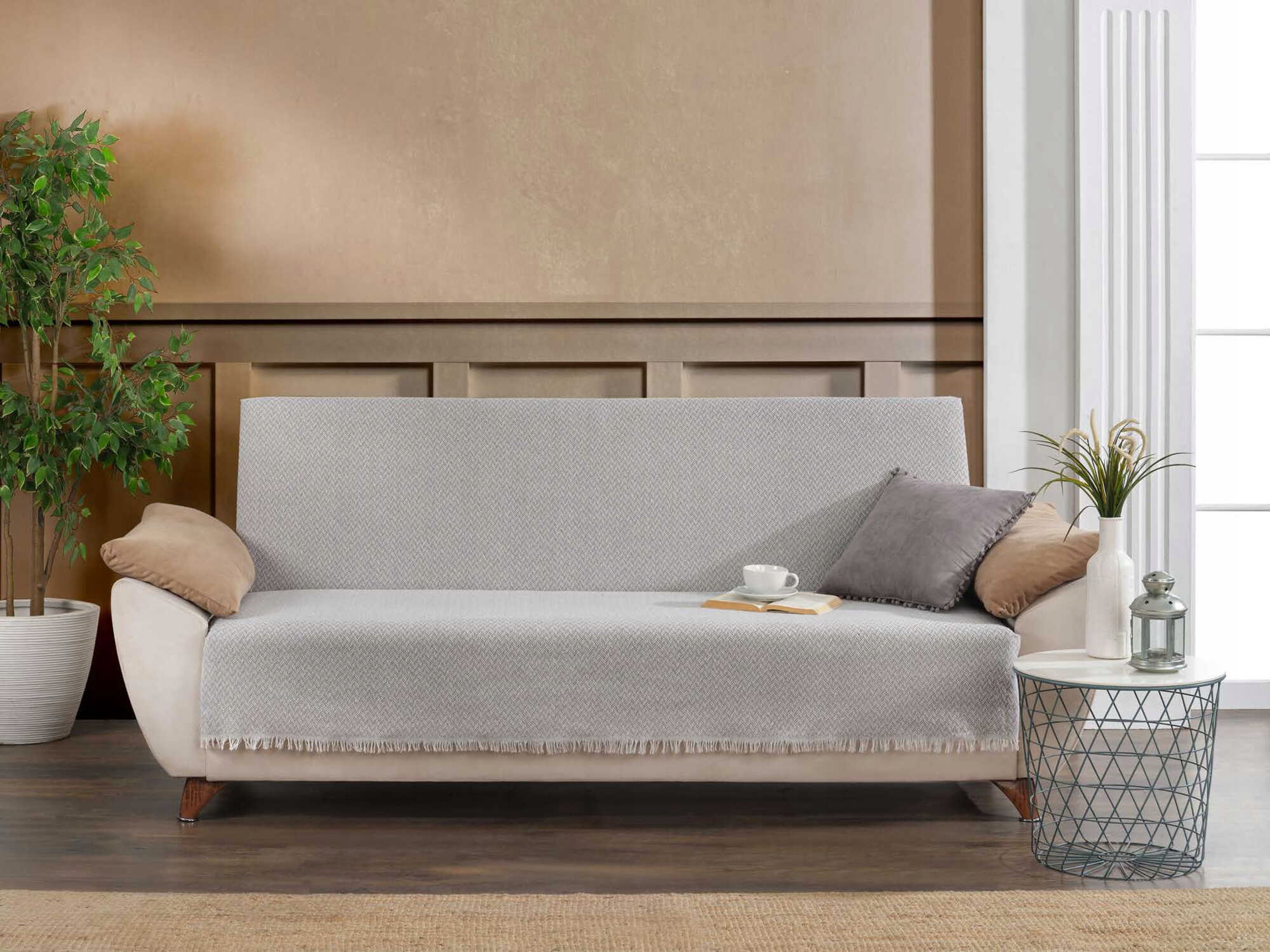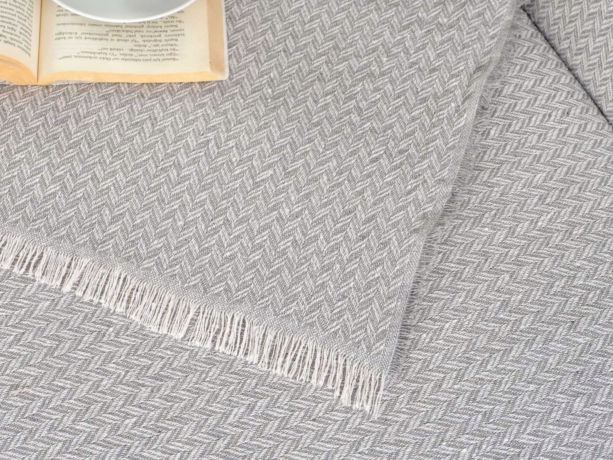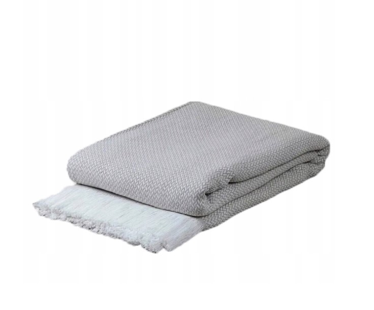 KOC NARZUTA POKROWIEC NA SOFE Z FRĘDZLAMI TURECKII JASNY SZARY 200X230 PREZENT