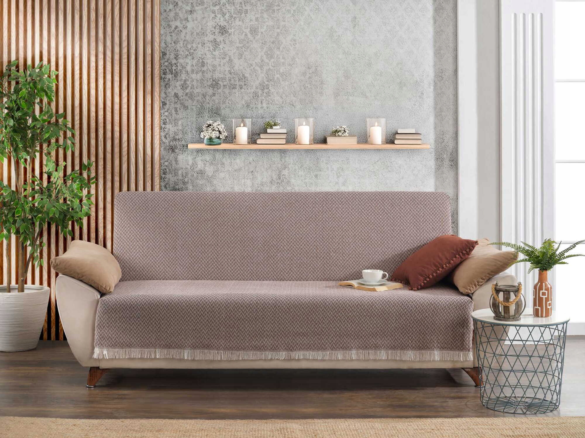KOC NARZUTA POKROWIEC NA SOFE Z FRĘDZLAMI TURECKII BRĄZ 200X230 PREZENT