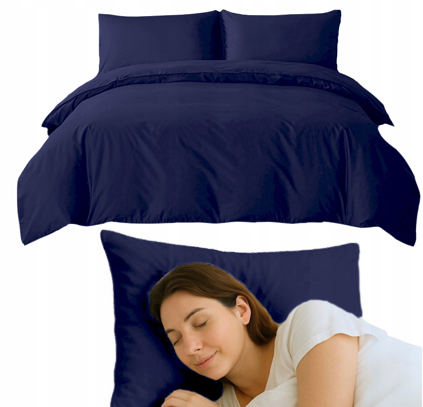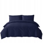 KOMPLET POŚCIELI COMFORT 140X200 GŁADKA SATYNA BAWEŁNIANA NAVY