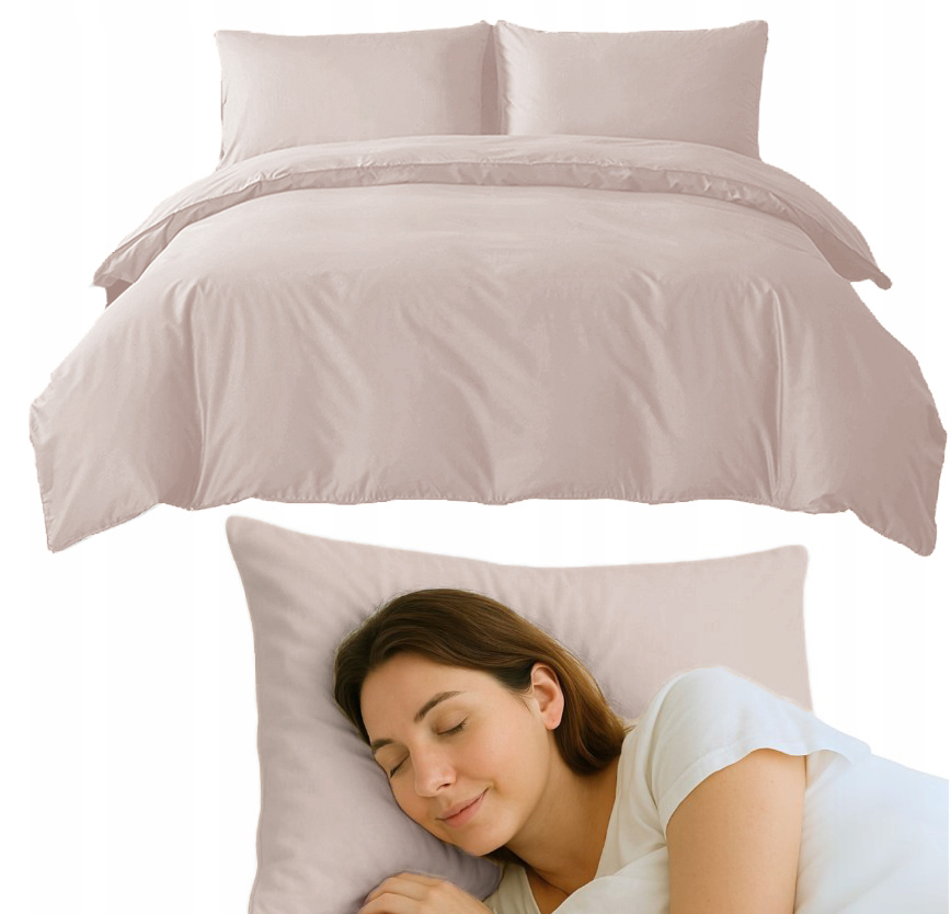 KOMPLET POŚCIELI COMFORT 140X200 GŁADKA SATYNA BAWEŁNIANA RÓŻOWY