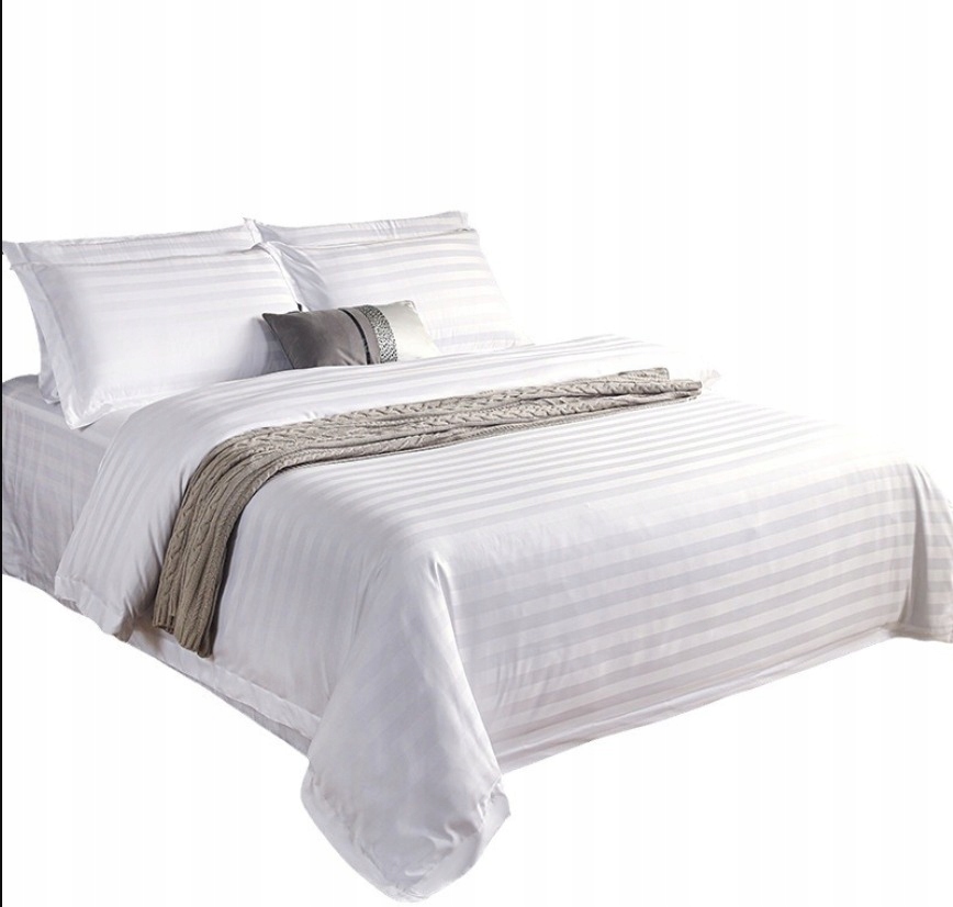 1 opinia dla KOMPLET POŚCIELI HOTELOWA BAWEŁNA BIAŁA PASKI 200X220CM + 2 POSZEWKI