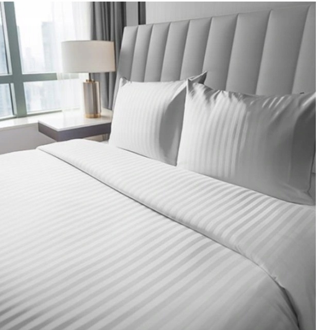Elegancki komplet pościeli wykonany z wysokogatunkowej satyny bawełnianej, ozdobiony subtelnym wzorem w paski. Idealny do hoteli, pensjonatów oraz domowych wnętrz, gdzie liczy się zarówno styl, jak i komfort snu.