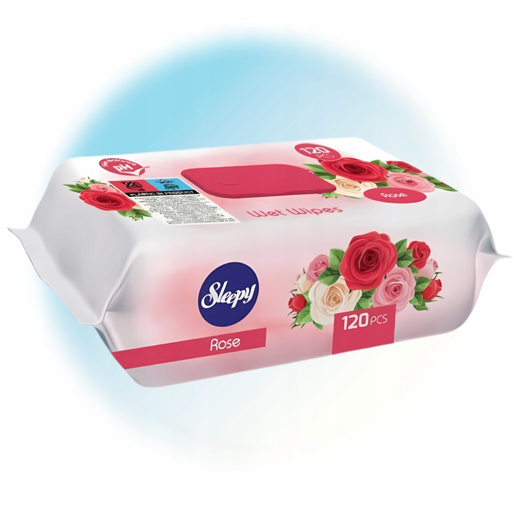 Chusteczki nawilżane SLEEPY o zapachu róży łączą skuteczną pielęgnację z przyjemnością codziennego używania.