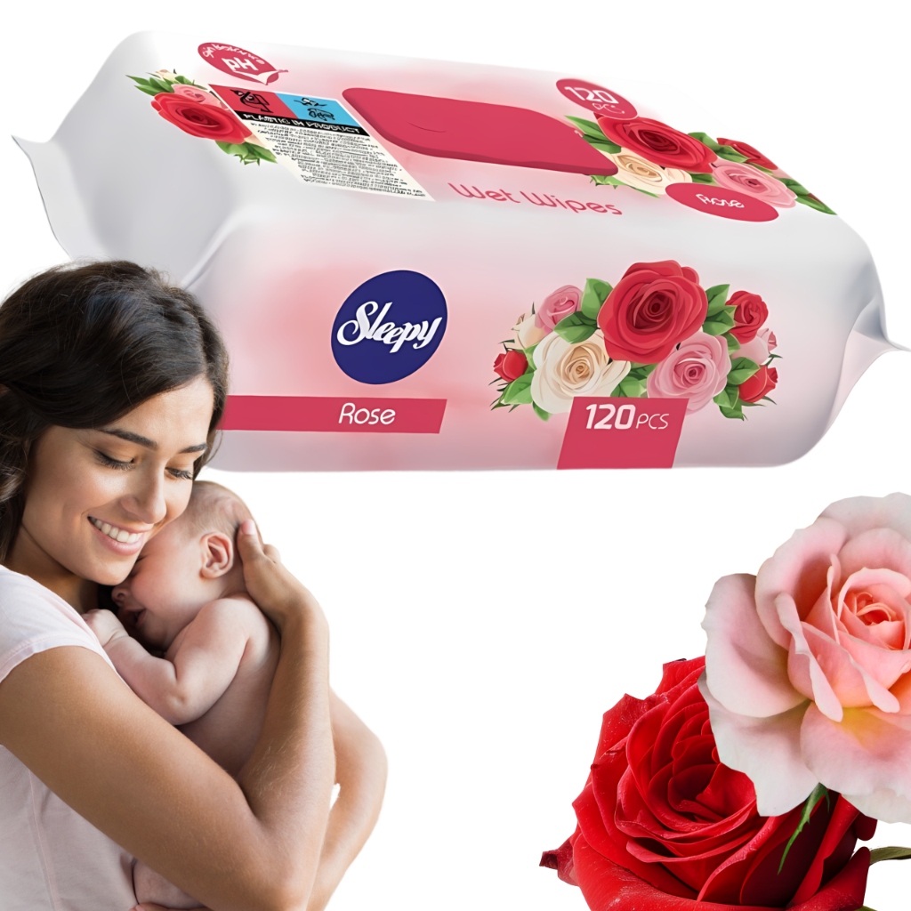Chusteczki nawilżane SLEEPY o zapachu róży łączą skuteczną pielęgnację z przyjemnością codziennego używania.