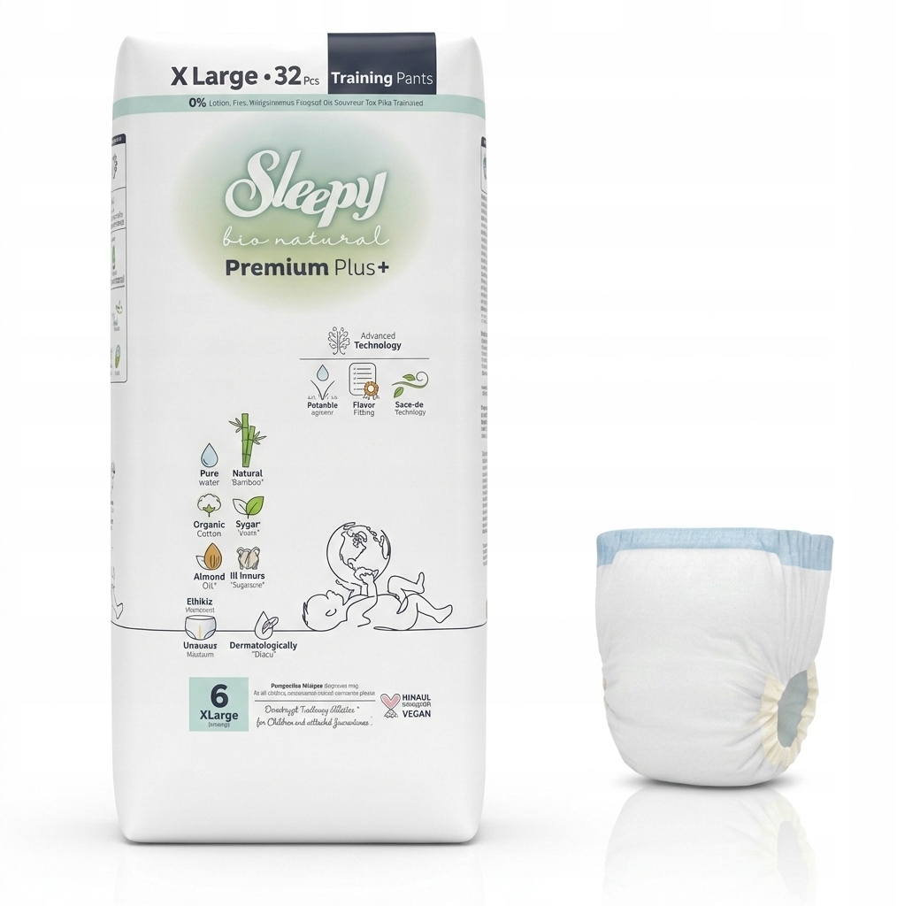 🍼 Sleepy Natural Premium Plus+ – Pieluchy Treningowe 6 X-Large (32 szt.)