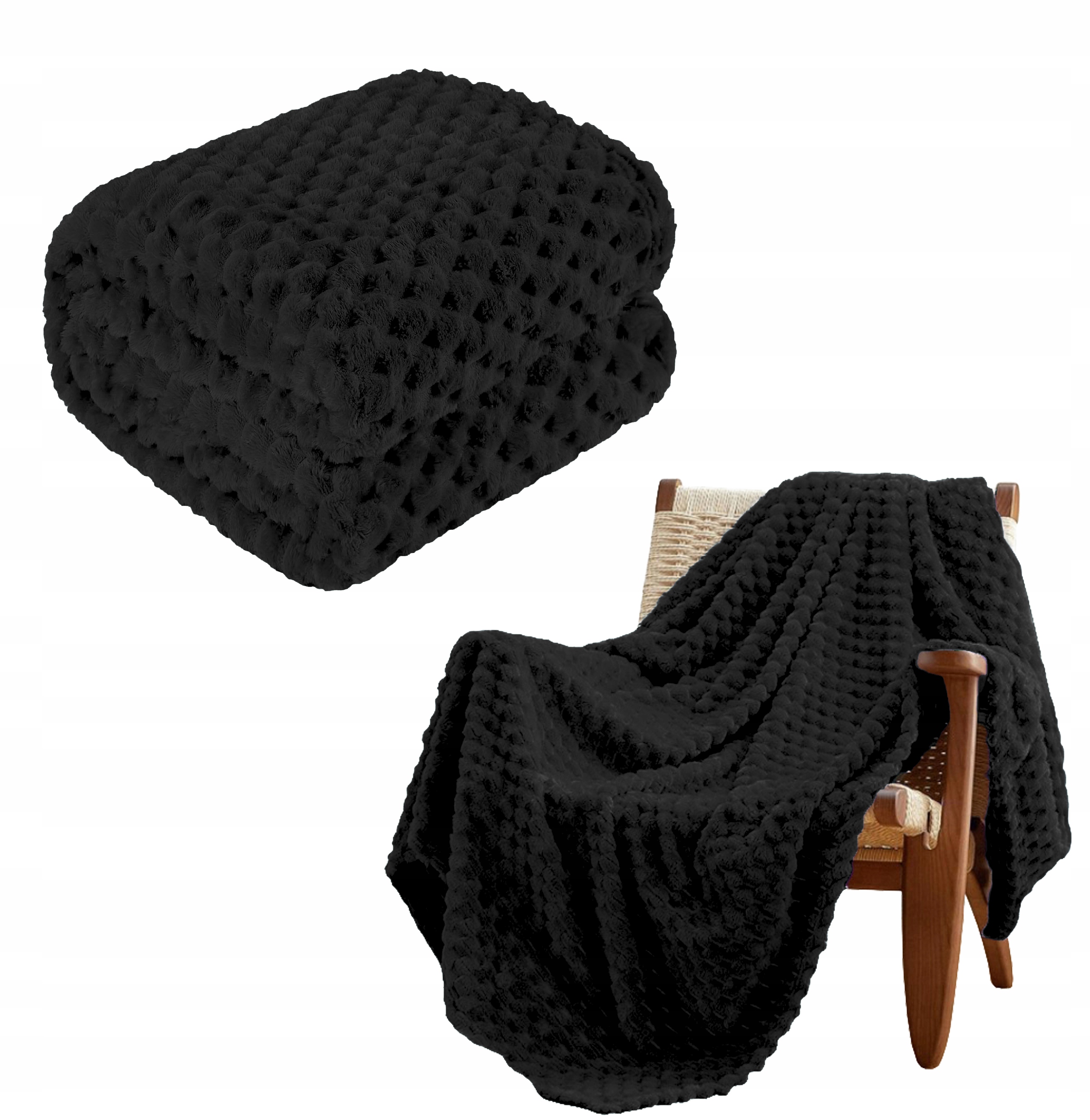 ✔️ Materiał: Miękki poliester o puszystej strukturze – idealny na chłodne wieczory.