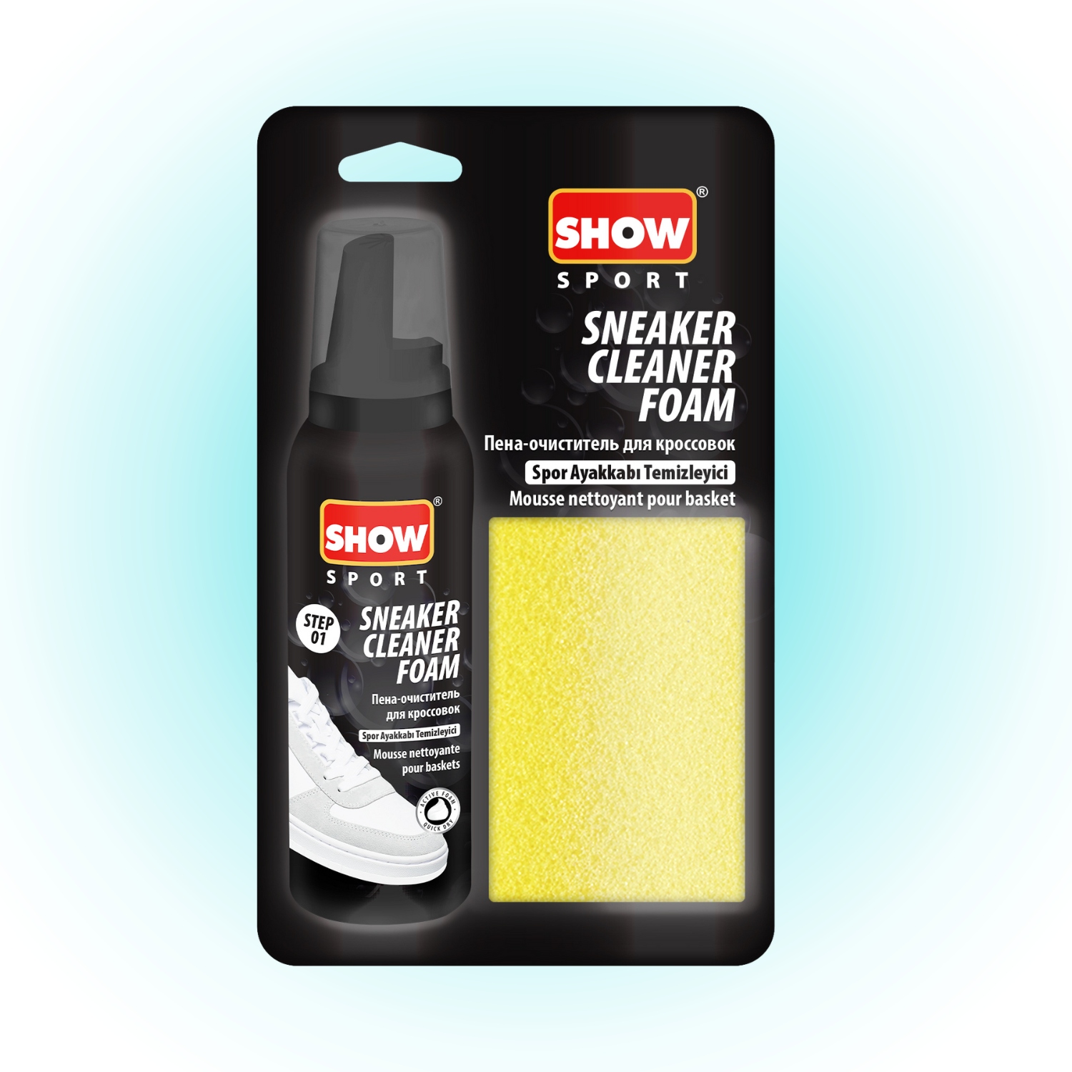 SHOW Zestaw do czyszczenia obuwia sportowego gąbka + pianka 125 ml