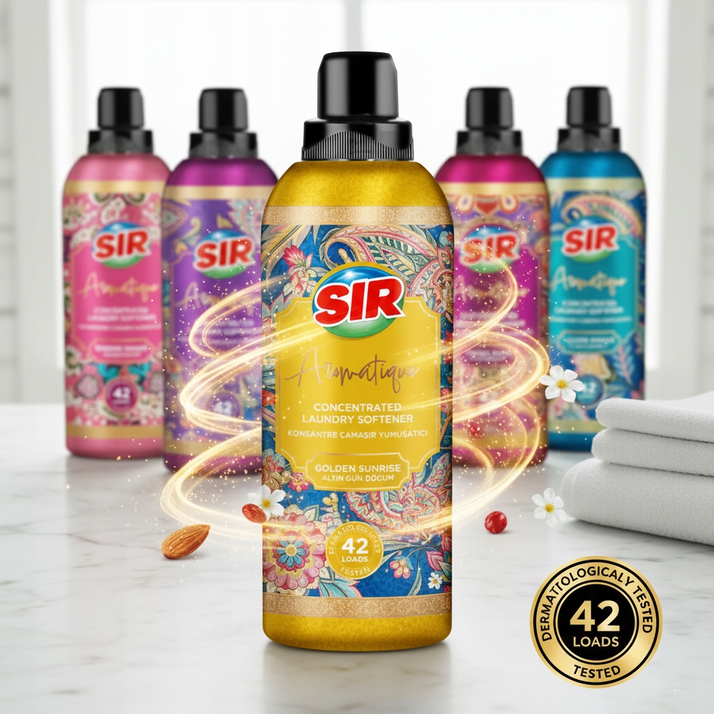 Poznaj wyjątkowy płyn do prania i zmiękczania SIR GOLDEN SUNRISE – stworzony, aby zapewnić ubraniom świeżość, miękkość i luksusowy zapach utrzymujący się przez długi czas. Dzięki nowoczesnej technologii mikrokapsułek zapachowych zapach uwalnia się stopniowo podczas noszenia ubrań, pozostawiając je pachnące jak po użyciu drogich perfum.