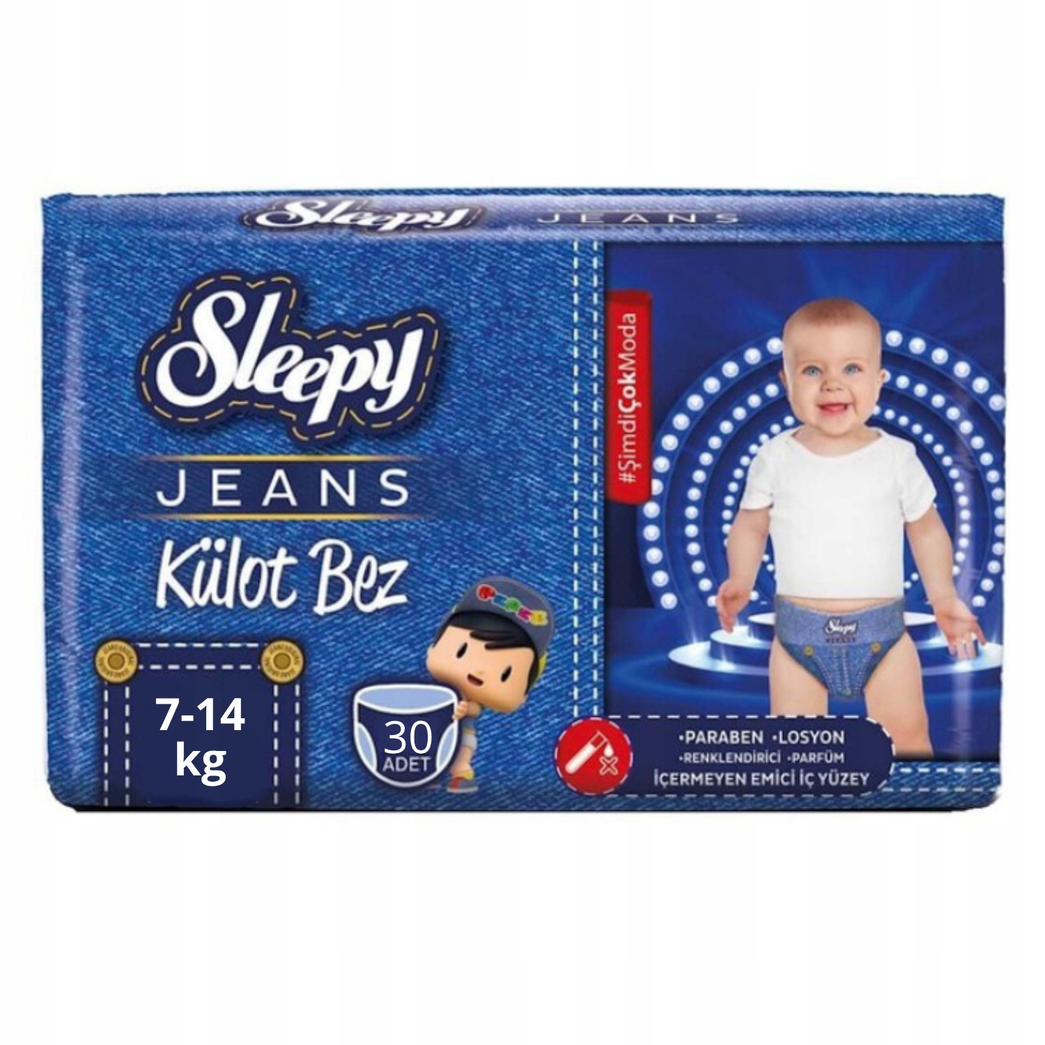 Sleepy Majtki treningowe pieluchy jednorazowe Jeans Boy 30 szt 7-14 kg