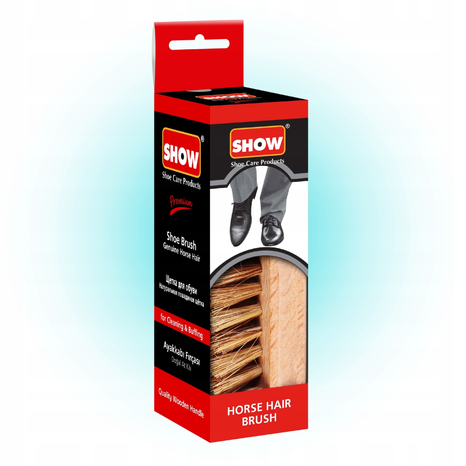 Szczotka SHOW® z naturalnego włosia końskiego to niezastąpiony akcesorium do pielęgnacji butów. Skutecznie usuwa kurz i brud, a po użyciu pasty nadaje obuwiu intensywny, głęboki połysk. Wytrzymała, drewniana rączka zapewnia komfort użytkowania i długą żywotność produktu.