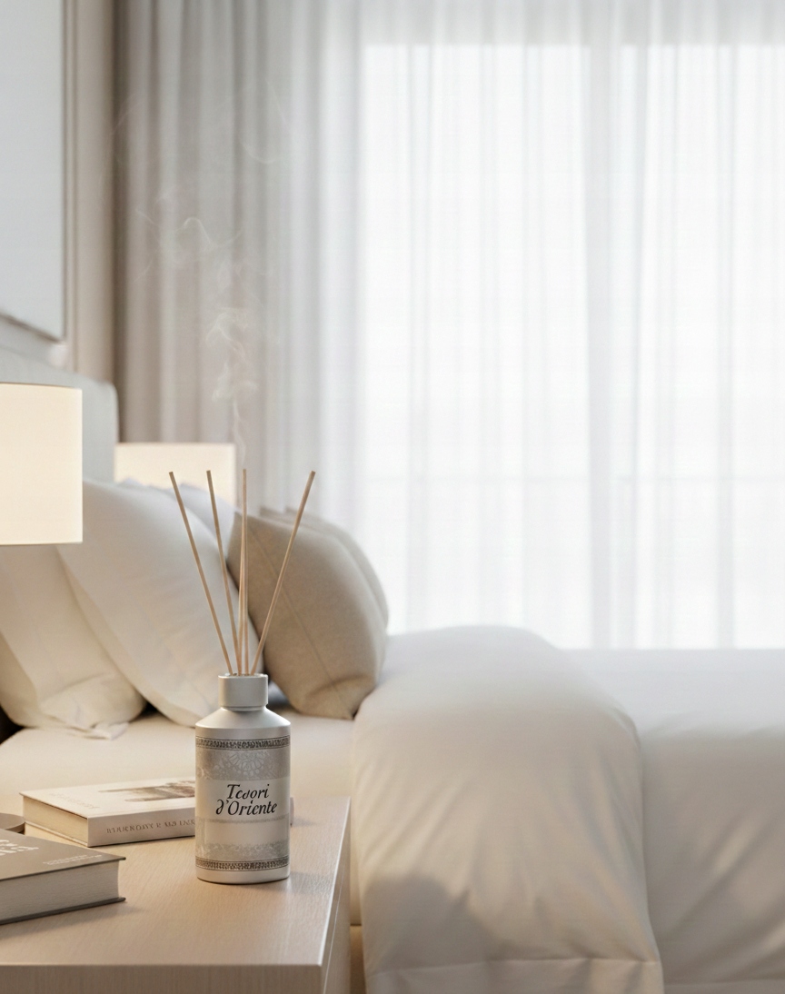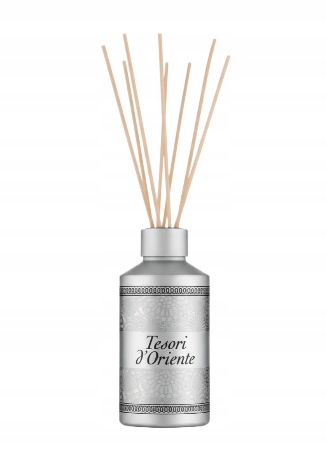 Wprowadź do swojego domu wyjątkowy klimat i nutę luksusu dzięki dyfuzorowi zapachowemu Tesori z patyczkami. To stylowe i skuteczne rozwiązanie do aromatyzowania pomieszczeń, które łączy elegancki design z długotrwałym działaniem.