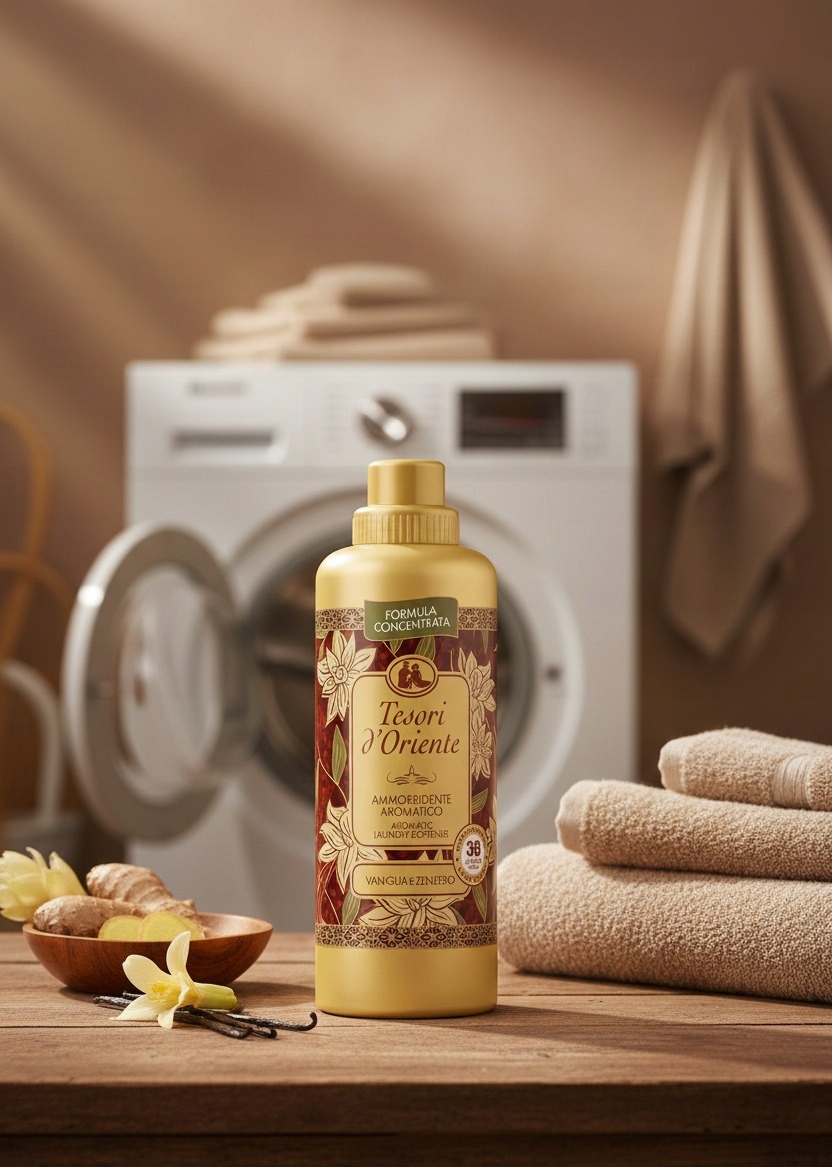 Płyn doskonale sprawdzi się do ubrań codziennych, ręczników oraz pościeli, podnosząc jakość prania i nadając mu elegancki charakter. Stylowe opakowanie wpisuje się w estetykę marki Tesori.