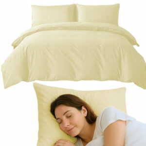 KOMPLET POŚCIELI COMFORT 140X200 GŁADKA SATYNA BAWEŁNIANA KREMOWY