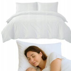 KOMPLET POŚCIELI COMFORT 140X200 GŁADKA SATYNA BAWEŁNIANA BIAŁY