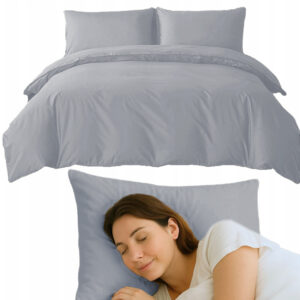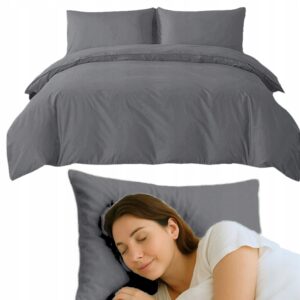 KOMPLET POŚCIELI COMFORT 140X200 GŁADKA SATYNA BAWEŁNIANA CIEMNOSZARY
