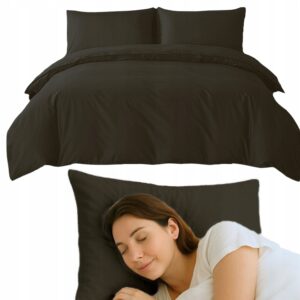 KOMPLET POŚCIELI COMFORT 140X200 GŁADKA SATYNA BAWEŁNIANA CZEKOLADOWY