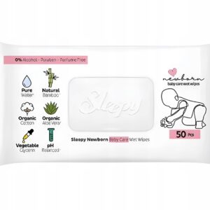 Chusteczki nawilżane 99,9% wody dla niemowląt dzieci Sleepy Aqua Care 50szt