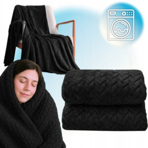 Koc miękki 200x220cm narzuta Gładki poliester pled czarny
