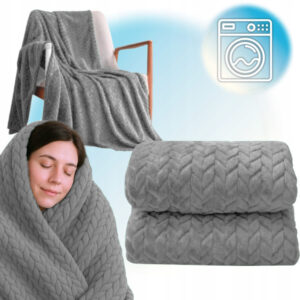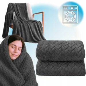 Gruby miękki koc 70X160cm narzuta W JODEŁKĘ poliester pled GRAFITOWY